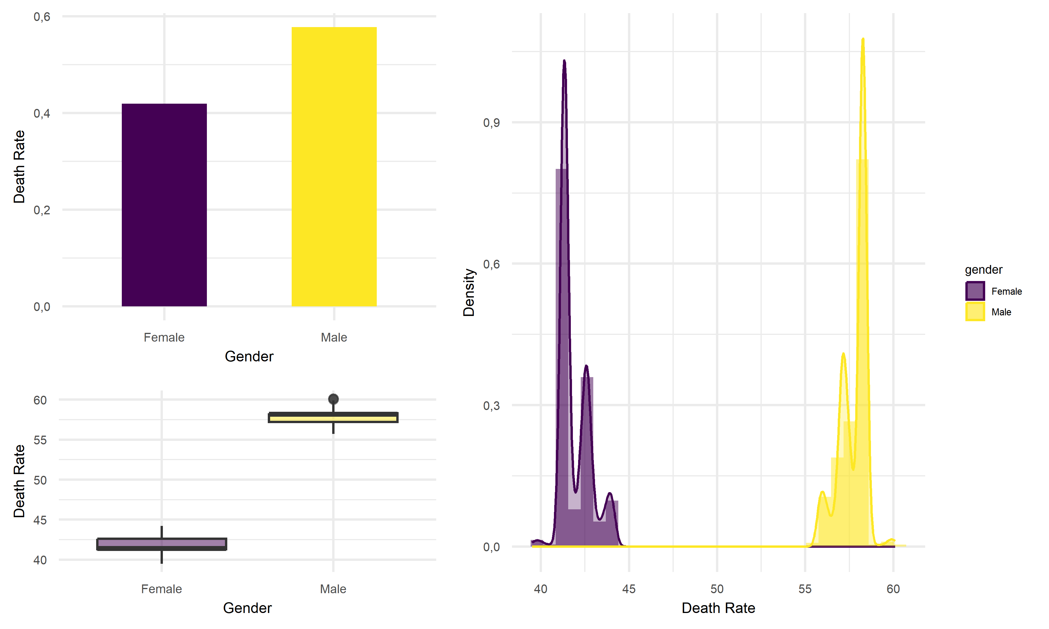 Based on above plots, the average death rate for male tend to 10% higher