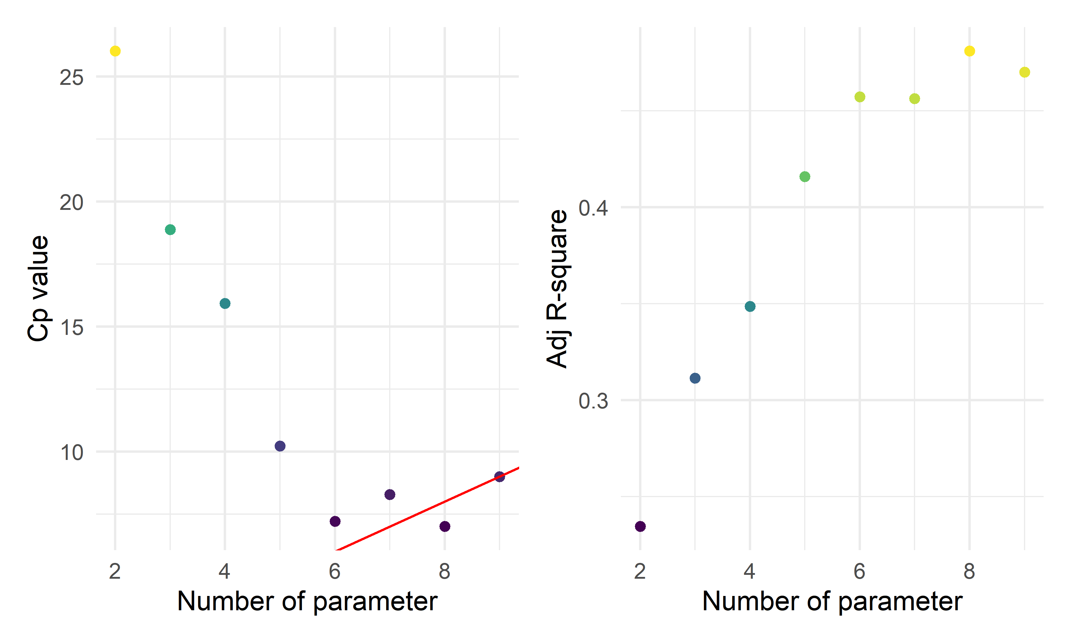 Since the two stepwise selection techniques and the criterion techniques all chose the same model with 7 predictors, we recommend this as our final model. Also, the LASSO gave a very similar suggested model.