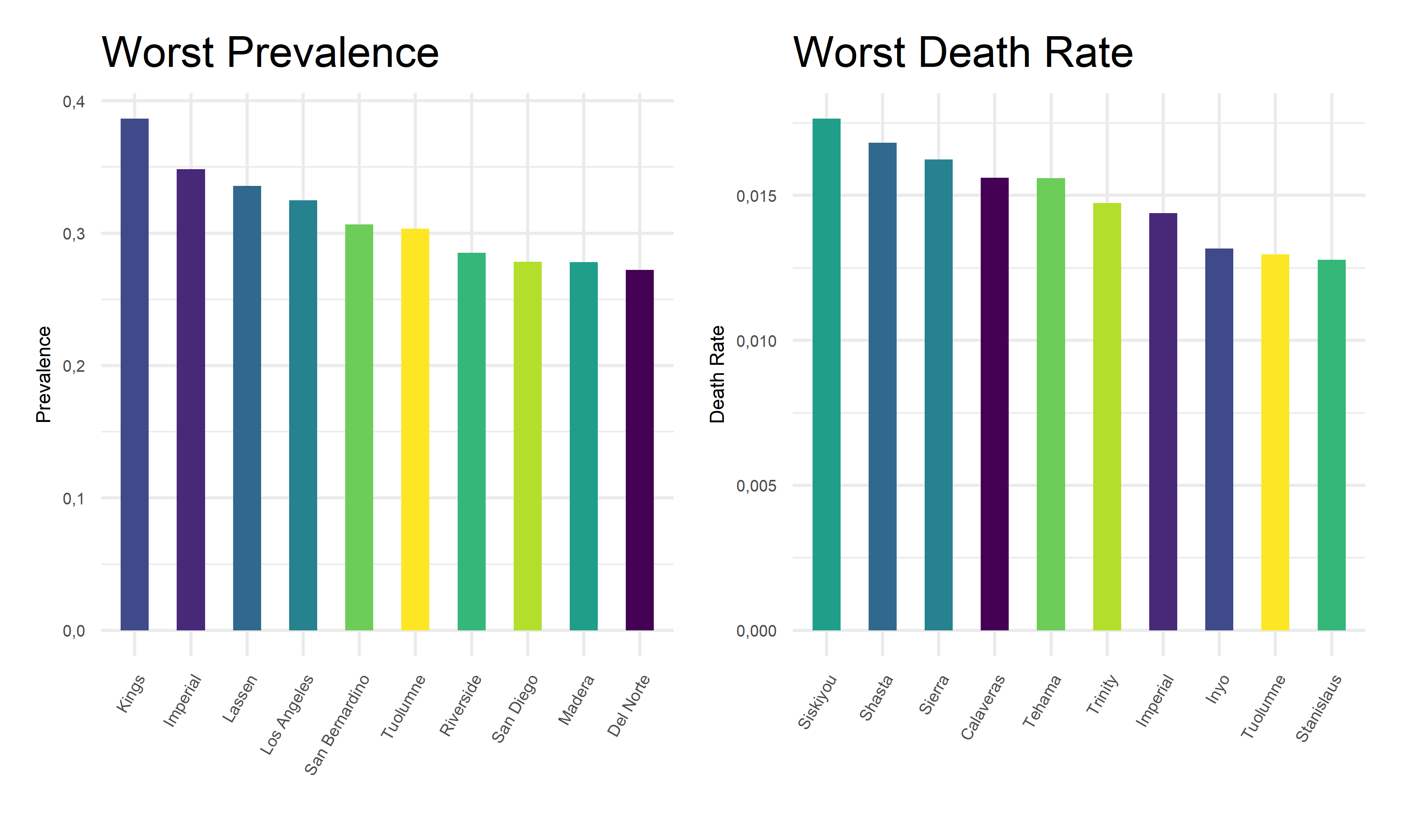 | County for Prevalence | Prevelence | County for Death Rate | Death Rate |